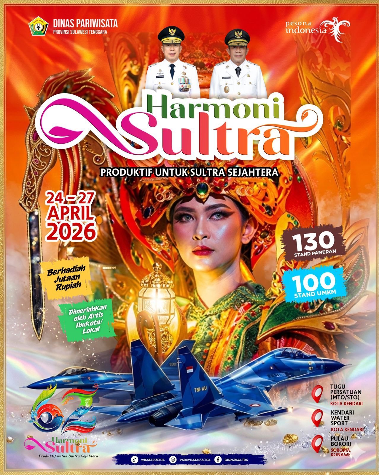 Menariknya, perayaan HUT Sultra tahun ini akan terintegrasi dengan kegiatan “Semarak Dirgantara 2026” yang diselenggarakan oleh TNI Angkatan Udara. Agenda tahunan tersebut bertujuan untuk memperkenalkan dan mengembangkan potensi kedirgantaraan di Indonesia, dan tahun ini Kendari dipilih sebagai lokasi pelaksanaannya.